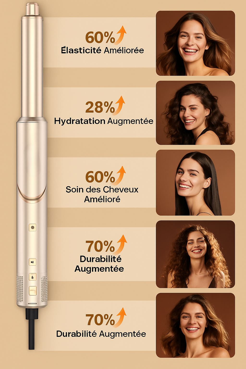 Oui ! Nos appareils sont conçus pour s’adapter à toutes les textures de cheveux : fins, épais, bouclés, lisses ou crépus. Chaque modèle propose plusieurs réglages de chaleur et de vitesse, ainsi que des accessoires interchangeables (buses et diffuseurs) pour un résultat sur mesure.
